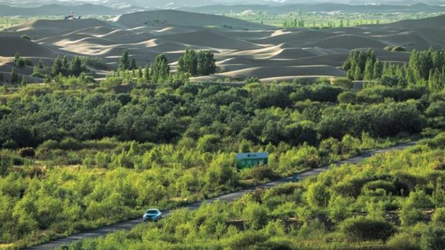 FOTO: CGTNImagen de cómo la naturaleza se abre paso en los desiertos de China.