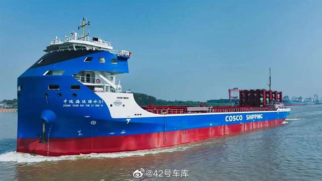 Foto: ForoCochesEléctricosImagen del Green Water 01 de COSCO, el buque portacontenedores ELÉCTRICO más grande del mundo.